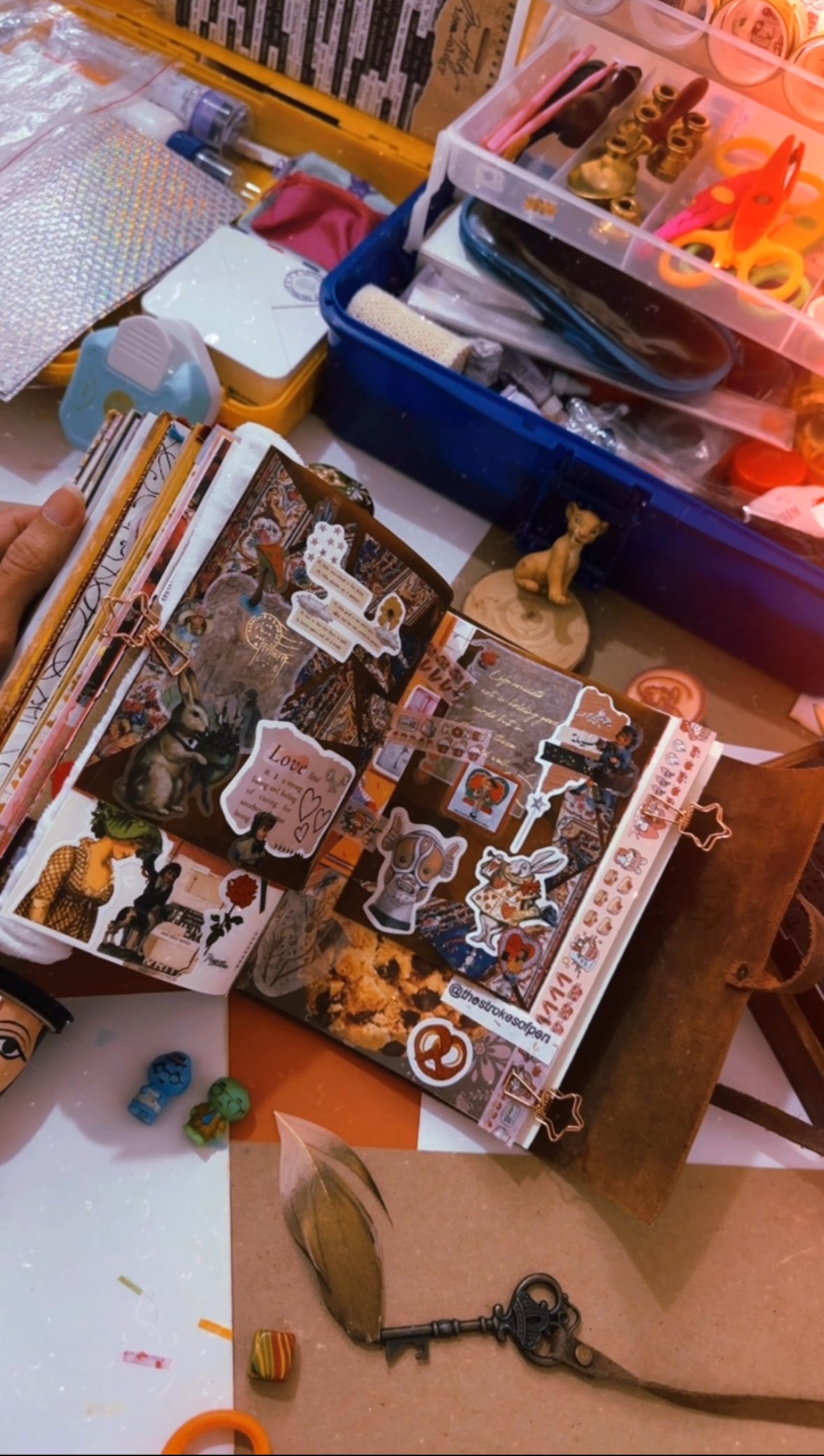 Art Journal is a creative practice of visually documenting ideas, stories, and emotions through thoughtfully designed pages. Using curated materials, cohesive color schemes, and intentional composition, each page becomes a thematic expression that blends storytelling with artistic exploration.